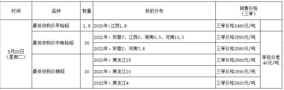 2025年5月20日最低收购价稻谷竞价销售交易公告