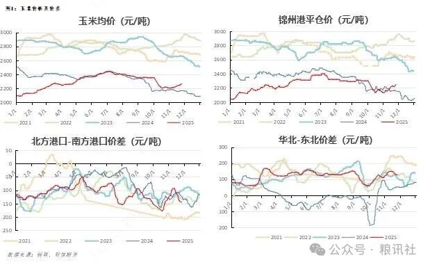 需求端:粮讯社企业跟踪数据显示,中储粮托底收储提供价格锚点;饲料企业启动春节前备货,生猪存栏4.3亿头支撑年需求1.9亿吨;深加工企业开工率回升,山东到车量连续增加。